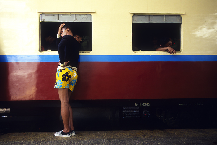 6. Oktober 2014 735 × 490 Yangon Hauptbahnhof Am Hauptbahnhof von Yangon: Ein Zug voller Rekruten kurz vor seiner Abfahrt zu den Kasernen im Norden Burmas.